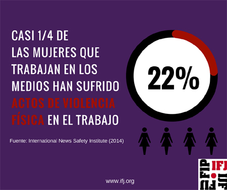 Estudios recientes demuestran que al menos un 65% de las mujeres que trabajan en medios de comunicación han experimentado intimidación, amenazas o abusos en relación a su trabajo y aproximadamente un cuarto han sufrido actos de violencia física.