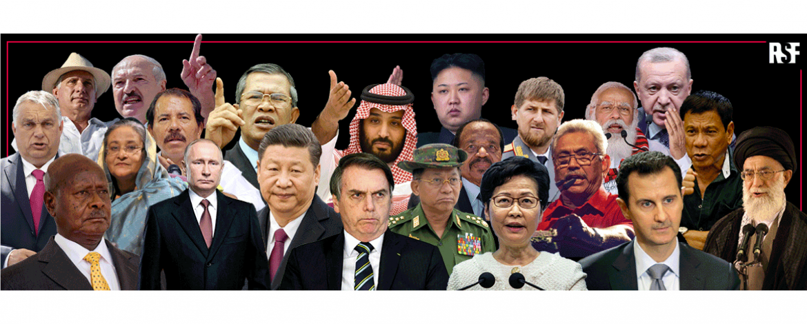 Reporteros sin Fronteras publica una galería de retratos sombríos con 37 jefes de Estado o de gobierno que imponen una represión masiva contra este derecho por todo el mundo.