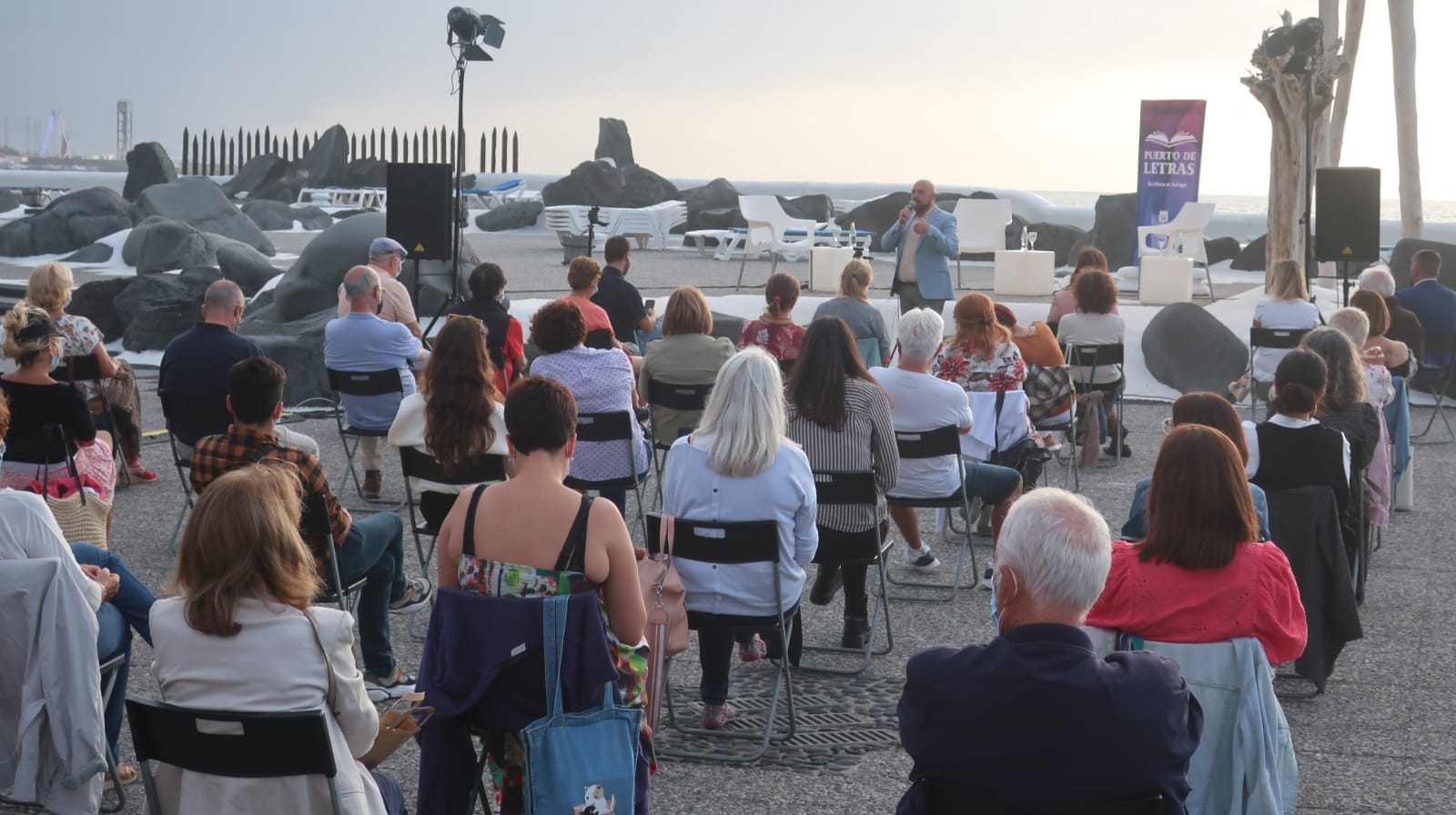 Los escritores Mónica Ojeda y Jordi Carrión dialogaron en el Lago Martiánez de Puerto de la Cruz con la moderación de uno de los promotores del proyecto, Antonio López Ortega.